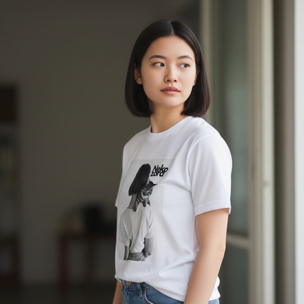 スタイリッシュで大人も着られる猫デザインTシャツ。