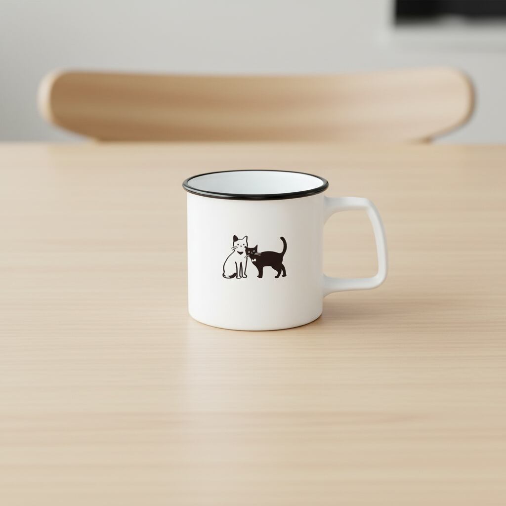 前面と反対側に可愛いネコのイラストが入った、毎日のコーヒータイムをちょっと特別にするデザイン。