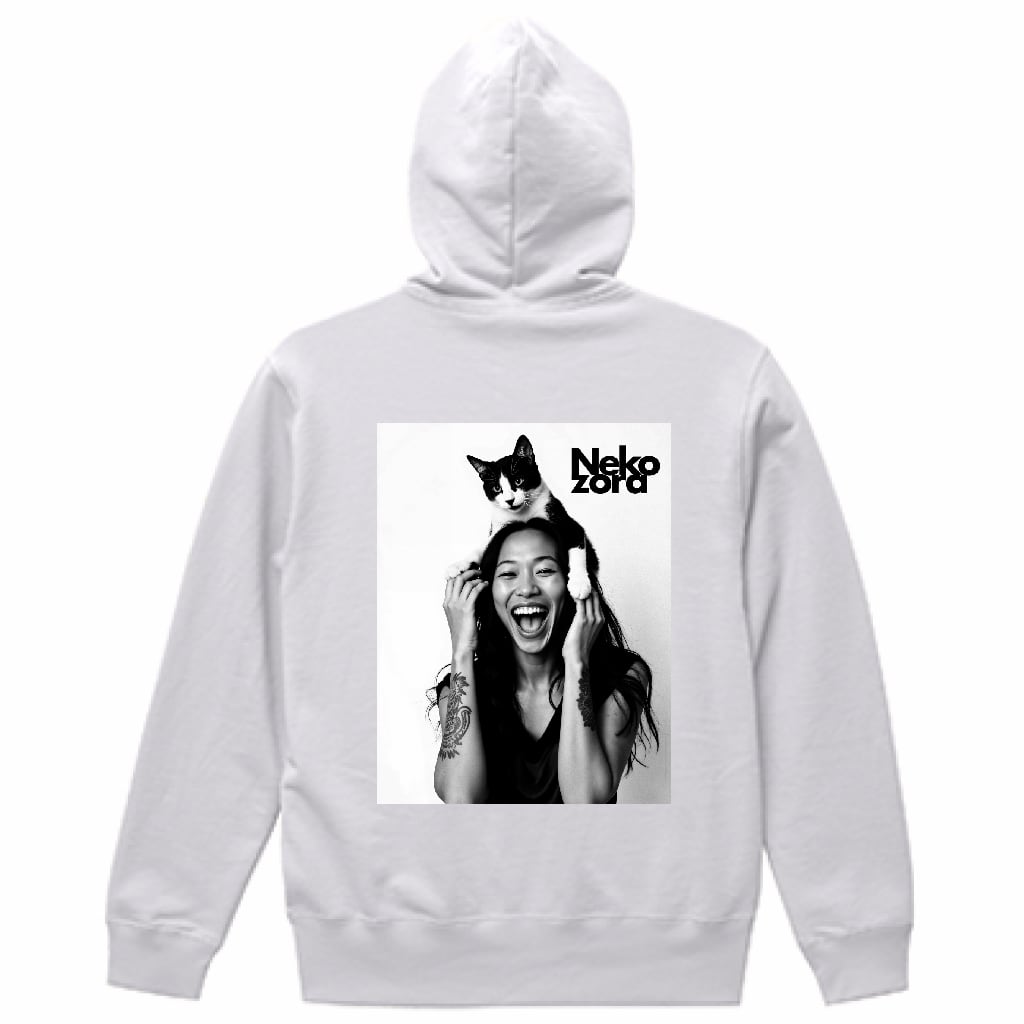 モノクロ写真のように洗練された雰囲気をまとった、Nekozoraオリジナルパーカー。